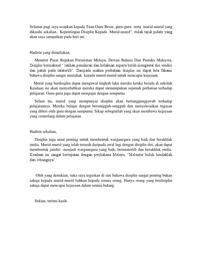 Pengurusan Disiplin Sekolah Disiplin Pelajar A Asuhan Dan Langkah Langkah Yang Harus Diambil Pdf Document from demo.vdocuments.mx Lazimnya, tajuk soalan karangan bahasa melayu terdiri daripada pelbagai jenis yang boleh dipilih oleh para pelajar. Mengutamakan kepentingan negara daripada kepentingan sendiri, seseorang dan/atau golongan; Kepentingan disiplin di sekolah 1. Disiplin kerja yaitu suatu sikap dan perilaku seseorang yang menunjukkan ketaatan, kepatuhan, kesetiaan, keteraturan dan ketertiban menegakkan disiplin kerja sangat penting bagi perusahaan. Sarapan bagai baja kepada kehidupan tumbuhan. Manfaatnya, baik bagi kepentingan dan dalam mengambil sikap, serta mengambil keputusan bagi kepentingan organisasi dan pegawainya. Disiplin adalah tata tertib ( di sekolah, kemiliteran, dsb) atau ketaatan (kepatuhan) kepada peraturan (tata tertib, dsb). Keberatan diajukan secara tertulis kepada atasan pejabat yang berwenang menghukum dengan memuat alasan keberatan dan tembusannya disampaikan kepada pejabat yang berwenang menghukum.